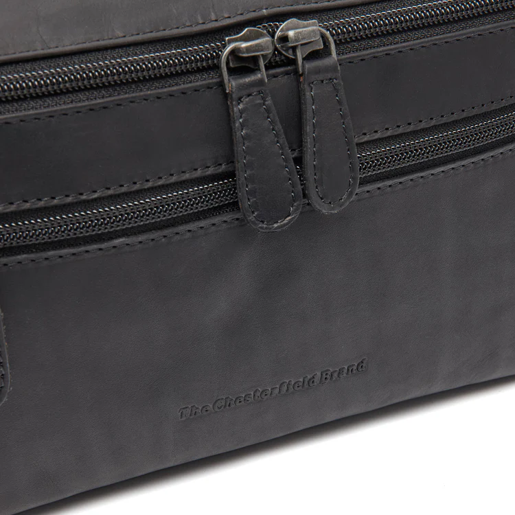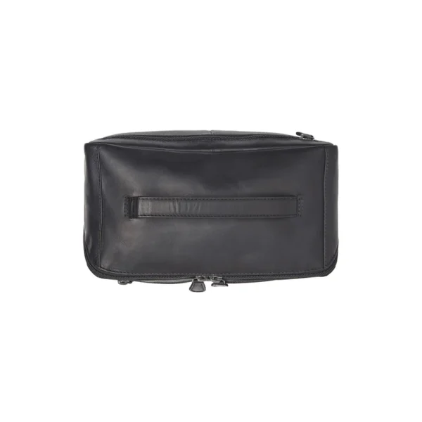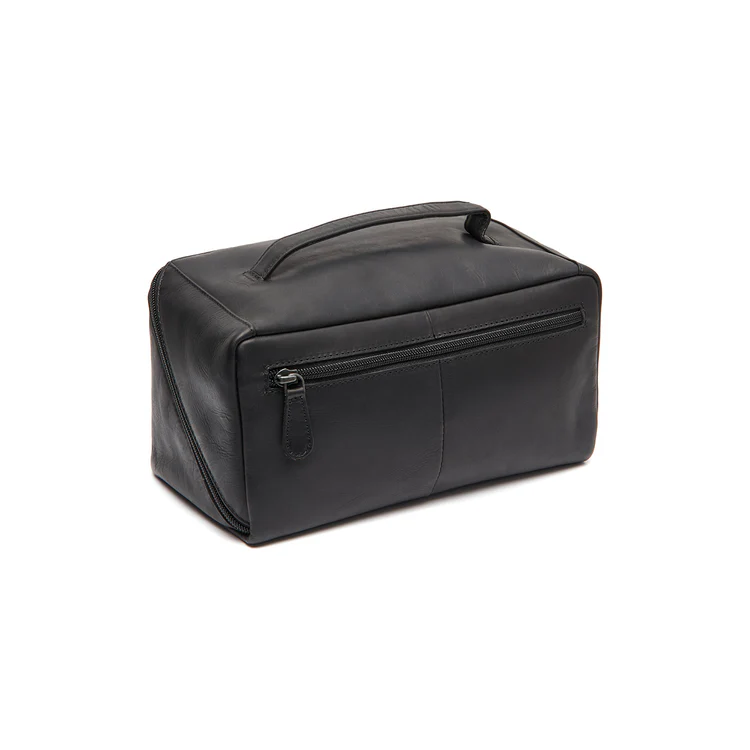 Stórt aðalhólfið er skipt í tvo hluta, með þröngum rennilásvasa í miðjunni. Þannig geturðu skipulagt hlutina þína skýrt: til dæmis vax, hárlakk eða förðun öðru megin og sjampó, svitalyktareyði eða rakvél hinu megin.