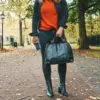 Stílhrein axlartaska úr leðri með mismunandi geymsluhólfum og styrktu hólfi fyrir spjaldtölvuna þína.