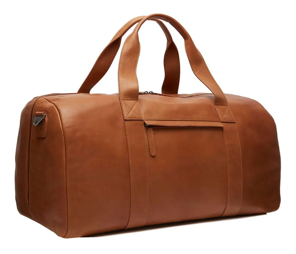 Myndir þú frekar taka þetta auka par af skóm og auka fatnaði með þér í helgarfrí? Þá er mjög mælt með þessari leðurhelgartösku Hudson. Með rúmmáli upp á 50 lítra er þessi leðurferðataska stærsta taska í safninu okkar. Í stóra aðalhólfinu eru geymsluhólf fyrir spjaldtölvu (25cm X 25cm), snjallsíma og einn vasa með rennilás. Einstakt smáatriði við þessa helgartösku er að henni fylgir samsvarandi bómullaraxlaról í samsvarandi litum.