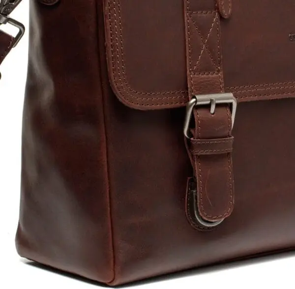 Kynntu þér Imperia leðuraxlartöskuna, hina fullkomnu tasku fyrir annasama daga í vinnunni og á ferðinni. Þessi hágæða leðurtaska frá The Chesterfield Brand er stór og haganlega hönnuð svo þú getir tekið eigur þínar með þér á skipulagðan hátt. Ekki bara hagnýtur valkostur, heldur einnig stílhrein fyrir allar viðskiptastefnur þínar.Imperia axlarpokinn er með bæði stillanlegri og aftengjanlegri axlaról sem gerir þér kleift að laga hvernig þú berð hana að þínum þörfum. Að auki er taskan með þægilegu handfangi sem gerir það auðvelt að bera hana í höndunum. Aðalhólf töskunnar lokast með stílhreinum sylgjum með segulloku. Undir flipanum er öruggur rennilás til að loka aðalhólfinu. Aðalhólfið er skipt með rennilás geymsluhólf. Á annarri hliðinni er sérstakt fartölvuhólf fyrir fartölvur allt að 15 tommur. Á hinni hliðinni eru fleiri ýmis geymsluhólf, sem henta til að skipuleggja kortin þín, penna og síma. Þar að auki er læsanlegt geymsluhólf með rennilás til að geyma á öruggan hátt verðmæta hluti eins og lykla og heyrnartól. Að utan eru þægilegir vasar með rennilás bæði að framan og aftan á töskunni.
