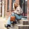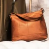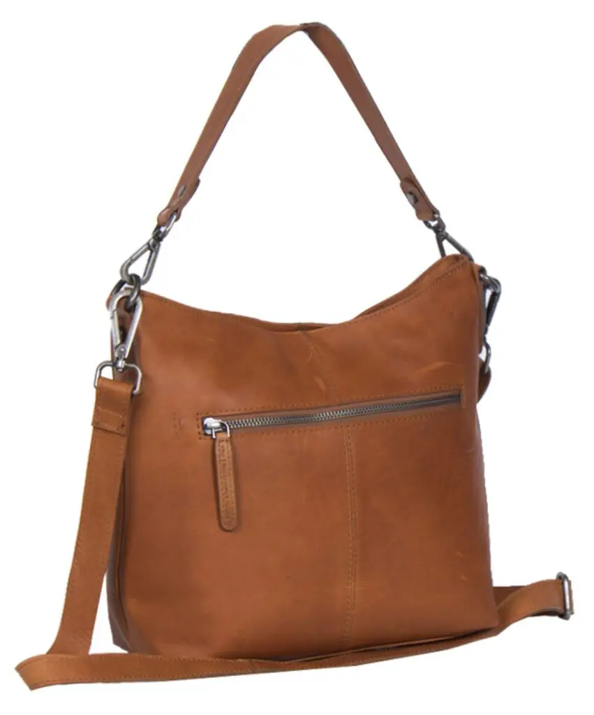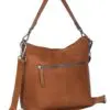 Þessi hágæða brúna leðurtaska er með fallegum rennilás að ofan. Innan í henni eru tvö renniláshólf og tvö önnur hólf til að geyma skjöl og persónulega muni. Þar að auki er handhægur vasi fyrir snjallsímann þinn.