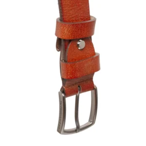 Beltið er 3,5 sentimetrar á breidd og er með traustri sylgju með sterkri hönnun. Hann er fáanlegur í þremur mismunandi litum: koníaki, svörtu og brúnu, og í lengdum 95, 105, 115 og 125 cm.
