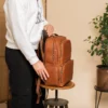 Lennox býður upp á einstakan þægindi. Hann er með styrktum bakhlið og stillanlegum, bólstruðum axlarólum, sem gerir hann auðveldan í burði, jafnvel þegar hann er fullhlaðinn. Taskan er einnig með sterkt handfang, svo þú getur líka borið hann í höndunum. Lennox er úr hágæða vaxleðri og geislar ekki aðeins af lúxus heldur er hann einnig endingargóður og þolir daglegt slit. Fáanlegur í koníakslit, brúnum og svörtum, það er alltaf útgáfa sem passar fullkomlega við þinn stíl.