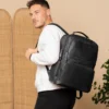 Lennox býður upp á einstakan þægindi. Hann er með styrktum bakhlið og stillanlegum, bólstruðum axlarólum, sem gerir hann auðveldan í burði, jafnvel þegar hann er fullhlaðinn. Taskan er einnig með sterkt handfang, svo þú getur líka borið hann í höndunum. Lennox er úr hágæða vaxleðri og geislar ekki aðeins af lúxus heldur er hann einnig endingargóður og þolir daglegt slit. Fáanlegur í koníakslit, brúnum og svörtum, það er alltaf útgáfa sem passar fullkomlega við þinn stíl.