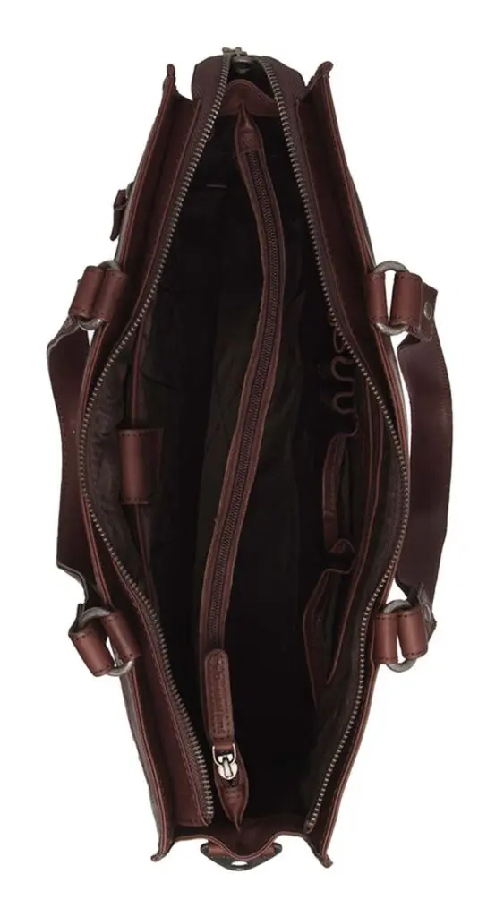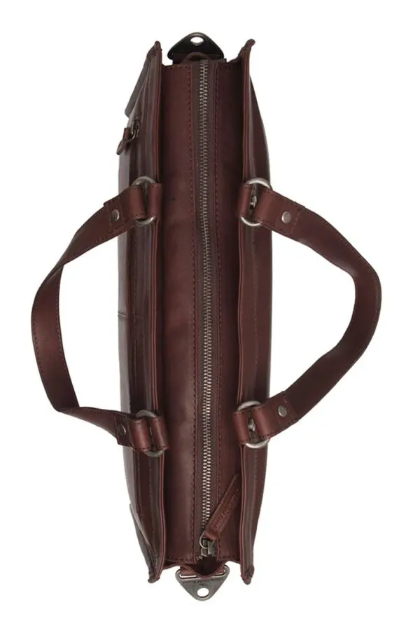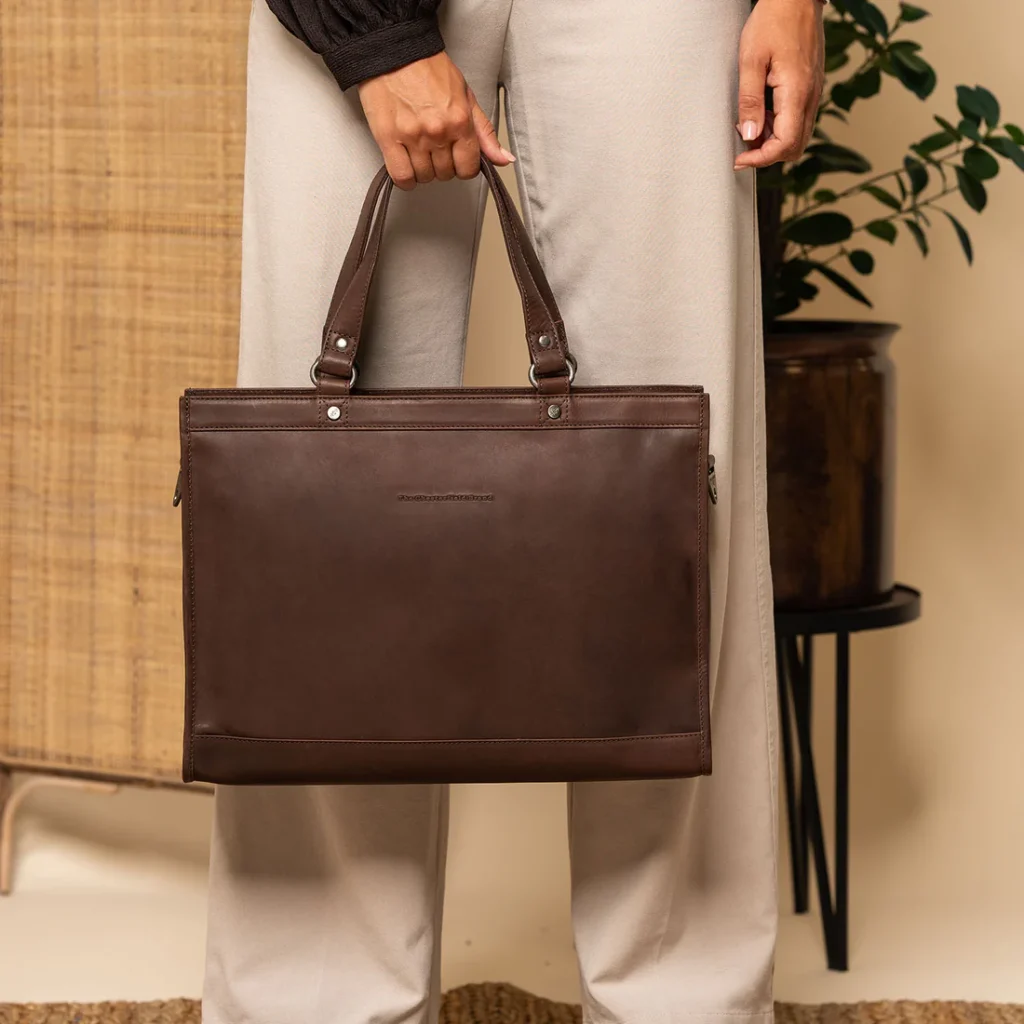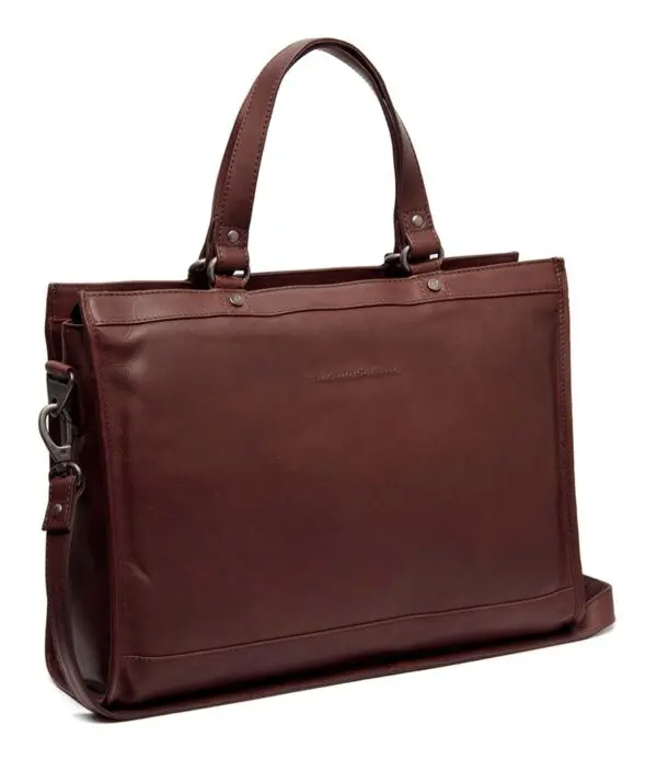 Leðurtaskan Manly frá The Chesterfield Brand er hin fullkomna taska fyrir öll viðskiptaævintýri þín. Ertu með viðskiptafund utan skrifstofunnar? Eða annasaman vinnudag á skrifstofunni? Manly tryggir að þú haldir þér skipulagðri og þægilegri allan vinnudaginn.Aðalhólfið í Manly-töskunni er skipt í tvo hluta með þægilegum rennilásvasa. Öðru megin er styrktur fartölvuvasi fyrir fartölvur allt að 15 tommur, ásamt plássi fyrir pappírsvinnu eða önnur skjöl. Hinu megin eru nokkrir geymsluvasar fyrir hluti eins og penna og síma, með nægu plássi fyrir nesti og vatnsflösku.