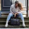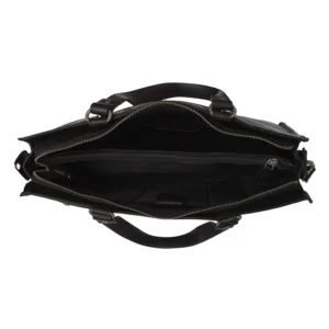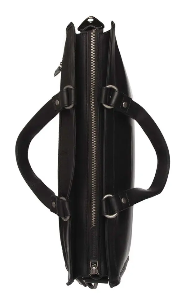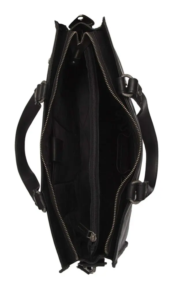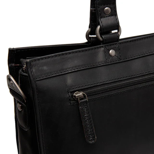 Leðurtaskan Manly frá The Chesterfield Brand er hin fullkomna taska fyrir öll viðskiptaævintýri þín. Ertu með viðskiptafund utan skrifstofunnar? Eða annasaman vinnudag á skrifstofunni? Manly tryggir að þú haldir þér skipulagðri og þægilegri allan vinnudaginn.Aðalhólfið í Manly-töskunni er skipt í tvo hluta með þægilegum rennilásvasa. Öðru megin er styrktur fartölvuvasi fyrir fartölvur allt að 15 tommur, ásamt plássi fyrir pappírsvinnu eða önnur skjöl. Hinu megin eru nokkrir geymsluvasar fyrir hluti eins og penna og síma, með nægu plássi fyrir nesti og vatnsflösku.