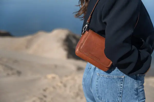 Uppgötvaðu Marcella leðurtöskuna fyrir konur frá The Chesterfield Brand: nett, glæsileg og stílhrein. Fyrir konur sem leita að glæsilegri blöndu af virkni og lúxus er Marcella leðurtöskunin fullkomin. Hún er hönnuð fyrir þær sem elska að vera skipulagðar og stílhreinar og er tilvalin fyrir kvöldstundir, verslunarferðir eða veislur. Marcella-taskan býður upp á allt sem þú þarft í nettri stærð. Aðalhólfið lokast með loki með segullokun og auka rennilás að neðan, sem tryggir að nauðsynjar þínar séu alltaf geymdar á öruggan hátt. Að innan eru þægileg geymsluhólf, þar á meðal vasa með rennilás og innri vasa - fullkomin fyrir kort, smápeninga eða lítið veski. Það er einnig pláss fyrir síma, lykla og snyrtivörur. Að auki er auka vasa með rennilás að aftan, tilvalinn fyrir hluti sem þú þarft að hafa fljótan aðgang að.