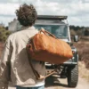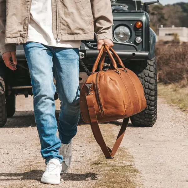 Ertu að fara í helgarferð? Eða ertu að skipuleggja viðskiptaferð? Þá er leðurhelgartaskan okkar, Melbourne, fullkomin fyrir þig! Þessi rúmgóða helgartaska býður upp á nægilegt geymslurými fyrir alla hlutina þína og lítur líka stílhrein og endingargóð út. Helgartaskan Melbourne hentar, þökk sé stærð sinni (53x27x28 cm), mjög vel sem íþróttataska, í helgarferðum og fríum.