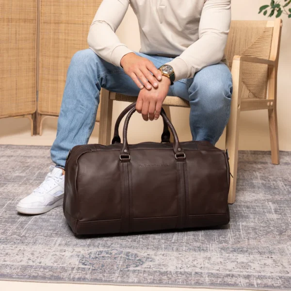Ertu að fara í helgarferð? Eða ertu að skipuleggja viðskiptaferð? Þá er leðurhelgartaskan okkar, Melbourne, fullkomin fyrir þig! Þessi rúmgóða helgartaska býður upp á nægilegt geymslurými fyrir alla hlutina þína og lítur líka stílhrein og endingargóð út. Helgartaskan Melbourne hentar, þökk sé stærð sinni (53x27x28 cm), mjög vel sem íþróttataska, í helgarferðum og fríum.