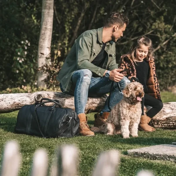 Ertu að fara í helgarferð? Eða ertu að skipuleggja viðskiptaferð? Þá er leðurhelgartaskan okkar, Melbourne, fullkomin fyrir þig! Þessi rúmgóða helgartaska býður upp á nægilegt geymslurými fyrir alla hlutina þína og lítur líka stílhrein og endingargóð út. Helgartaskan Melbourne hentar, þökk sé stærð sinni (53x27x28 cm), mjög vel sem íþróttataska, í helgarferðum og fríum.