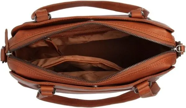 Með Porlezza leðuraxlartöskunni frá The Chesterfield Brand veistu að þú ert með vel skipulagða axlarpoka í fórum þínum. Þökk sé mörgum geymsluhólfum geturðu ekki aðeins geymt mikið af hlutum í þessari tösku heldur geturðu líka auðveldlega fundið þá aftur. Porlezza kemur með tveimur rúmgóðum handföngum, sem gerir þér kleift að bera töskuna auðveldlega yfir öxlina, jafnvel þegar þú ert í þykkri úlpu eða peysu. Að auki er taskan með stillanlegri og aftenganlega axlaról sem býður upp á marga burðarmöguleika.