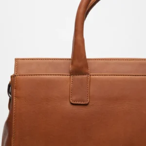 Rivera-taskan er með aðalhólf sem hægt er að skipta með rennilásvasa. Hægt er að festa eða losa hólfið með tveimur hnöppum. Hægt er að bera 14 tommu fartölvuna þína örugglega í bólstraða fartölvuhólfinu. Þessi leðurtaska fyrir konur er með lausri axlaról. Þetta gerir þér kleift að nota hana bæði sem handtösku og axlartösku.