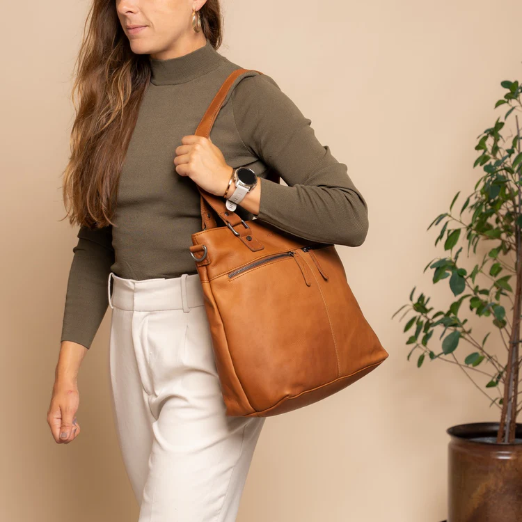 Leðurinnkaupatöskurnar Rome eru hagnýt augnafang tímabilsins. Fjölbreytt geymsluhólf, rúmgott aðalhólf og styrkt fartölvuhólf (14 tommur) tryggja að þú getir notað þessa gerð bæði sem innkaupatösku og viðskiptatösku. Þetta gerir leðurinnkaupatöskurnar Rome mjög hentuga fyrir ferðalög í vinnuna, verslunarferð eða helgarferð.