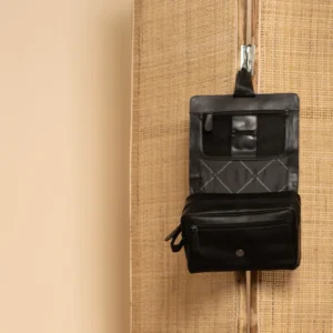 Frábær snyrtitaska sem hægt er að hengja upp. Geymdu allar snyrtivörur þínar á stílhreinan hátt? Þessi rúmgóða Rosario er fyrir þig! Þessi leður snyrtitaska hefur 1 stórt aðalhólf með nokkrum handhægum hólfum að innan. Handhægt að taka allt dótið með sér á vel skipulagðan hátt. Að aftan er auka rennilás hólf.