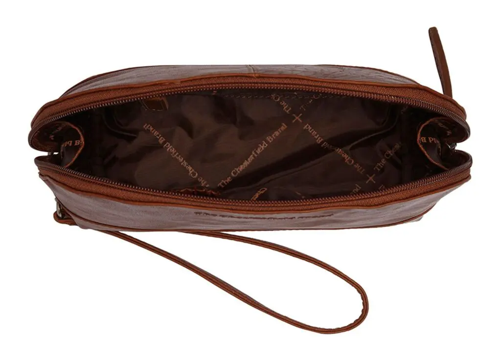 The Chesterfield Torino Rauð Stílhrein og nett leður snyrtitaska fyrir dömur. Þessi handhæga stærð hentar vel til að geyma farða og aðrar nettar snyrtivörur. Þessi snyrtitaska fyrir dömur er með eitt aðalhólf sem inniheldur rennilás. Fóðrið að innan er gerviefni og auðvelt að þrífa það.
