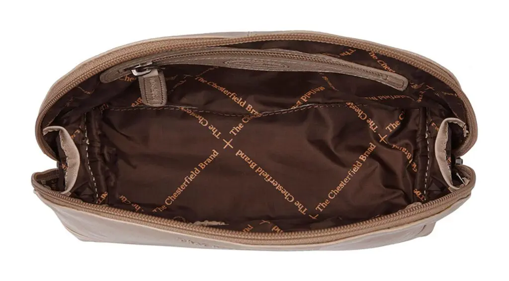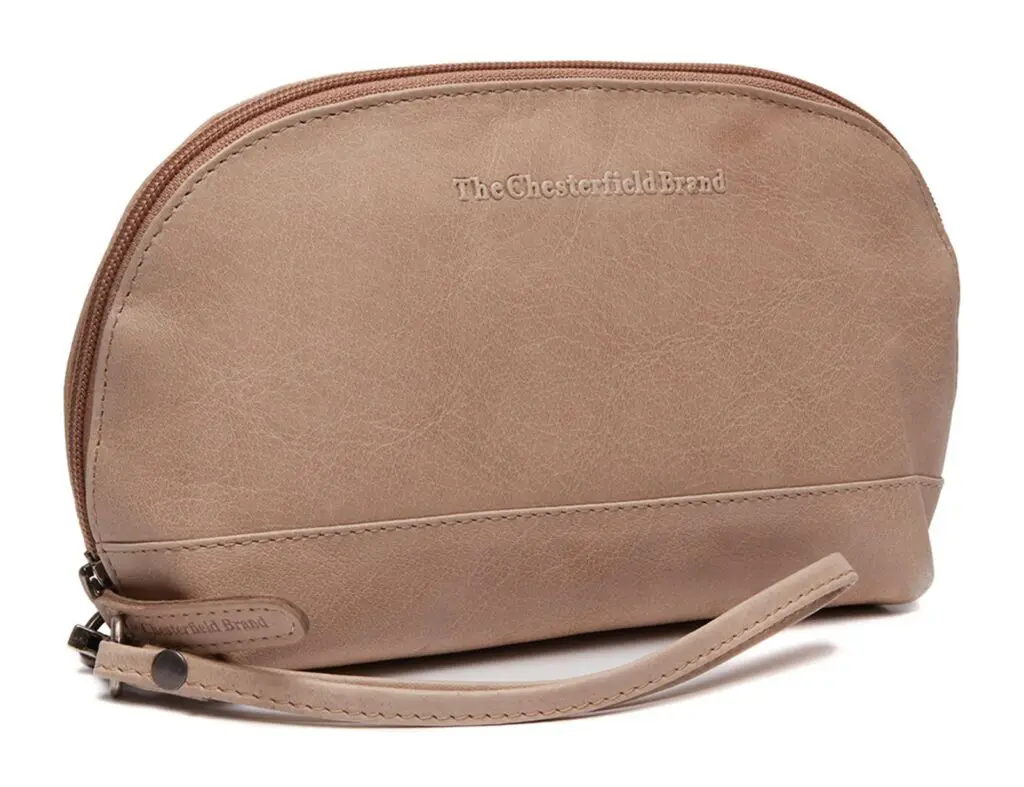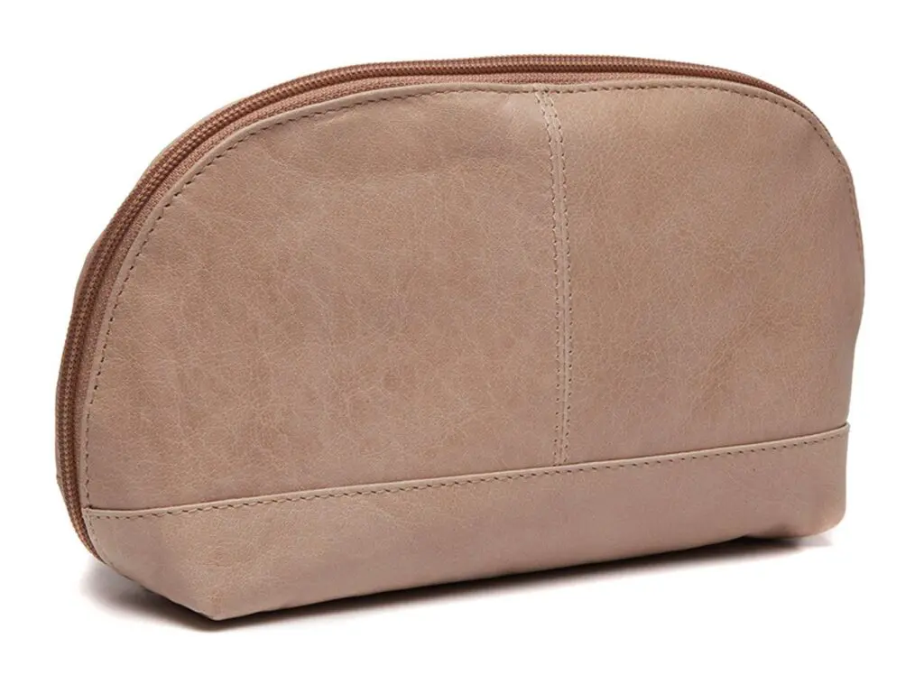 Stílhrein og nett leður snyrtitaska fyrir dömur. Þessi handhæga stærð hentar vel til að geyma farða og aðrar nettar snyrtivörur. Þessi snyrtitaska fyrir dömur er með eitt aðalhólf sem inniheldur rennilás. Fóðrið að innan er gerviefni og auðvelt að þrífa það.
