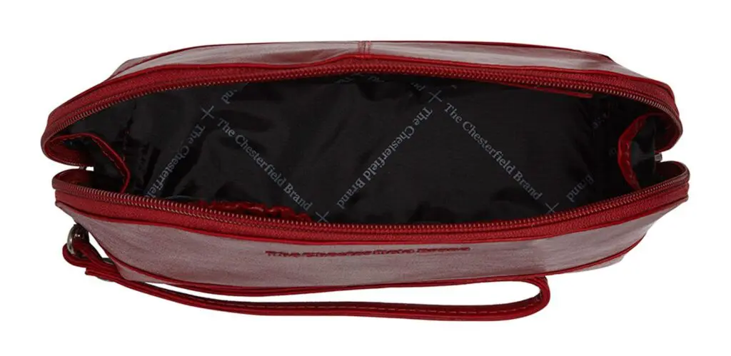 Stílhrein og nett leður snyrtitaska fyrir dömur. Þessi handhæga stærð hentar vel til að geyma farða og aðrar nettar snyrtivörur. Þessi snyrtitaska fyrir dömur er með eitt aðalhólf sem inniheldur rennilás. Fóðrið að innan er gerviefni og auðvelt að þrífa það.