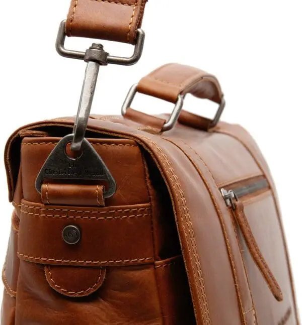 Upplifðu Veneto,hin fullkomna leðurfartölvutaska fyrir fagmannlegt útlit. Þessi leðurfartölvutaska frá The Chesterfield Brand er fullkominn félagi þinn fyrir hvern vinnudag og viðskiptafund. Þannig virðist þú ekki bara stílhreinn í vinnunni heldur líka skipulagður. Þessi leðuraxlartaska kemur með aftengjanlegri og stillanlegri axlaról sem gerir þér kleift að klæðast henni í hvaða lengd sem er. Efst finnurðu handfang svo þú getur líka auðveldlega borið bakpokann í höndunum. Veneto fartölvutöskunni lokast með loki og tveimur handhægum sylgjum með segulloku, á eftir með öruggum rennilás. Aðalhólfið er snjallt,skipt með hagnýtu geymsluhólfi með rennilás. Á annarri hliðinni finnurðu styrkt fartölvuhólf sem hentar fartölvum allt að 14 tommu, en hin hliðin er með minni geymsluhólfum fyrir símann þinn, heyrnartól, lykla og aðra nauðsynlega hluti. Einnig að utan er geymsluhólf með rennilás aftan á töskunni.Með fjölhæfni sinni og tímalausu útliti passar Veneto fullkomlega inn í atvinnulífið þitt. Hvort sem þú ert á leiðinni á skrifstofuna, borðar viðskiptahádegisverð eða þarft að halda mikilvæga kynningu, þá býður þessi fartölvutaska upp á nóg pláss fyrir alla verðmætu hlutina þína og tryggir að þú lítur alltaf stílhreint út.