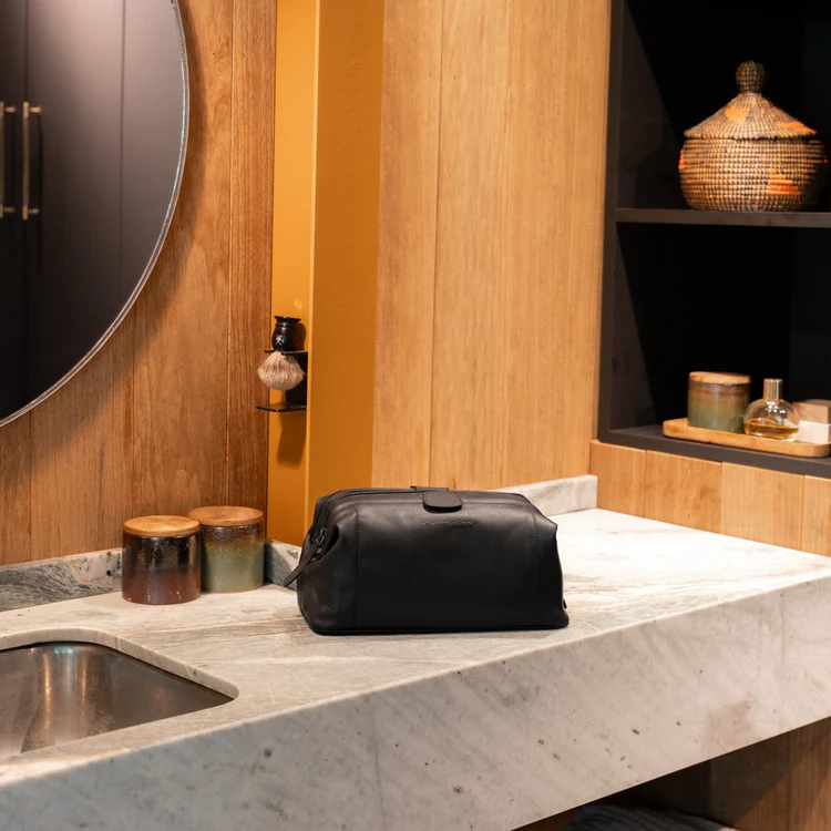 Viltu líka taka með þér allar snyrtivörurnar þínar með þér í ferðalög? Þá er leðursnyrtitaskan frá Vince rétta taskan fyrir þig. Vegna rúmgóðrar og stílhreinnar hönnunar hentar þessi snyrtitaska mjög vel til að koma öllum hlutunum þínum fyrir í góðu skipulagi. Að auki er auðvelt að opna hana.