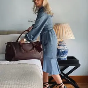 Ertur að fara í burtu um helgina? Þá er THE CHESTERFIELD leðurhelgartaskan okkar William fullkomin fyrir þig! Þessi rúmgóða helgartaska býður upp á nóg geymslupláss fyrir allt dótið þitt og er líka stílhrein og flott. Þessi glæsilega helgartaska er mjög hentug til að nota sem íþróttatösku,og í helgarfríið.Þessi helgartaska úr leðri hefur stórt aðalhólf (43 lítrar) með auka renndum vasa að innan. Aðalhólfið lokast með fallegum og sléttum rennilás. Þessi helgartaska kemur með langri og stillanlegri axlaról. Handföngin eru extra breið og því þægileg í hendinni.