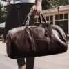 Ertur að fara í burtu um helgina? Þá er THE CHESTERFIELD leðurhelgartaskan okkar William fullkomin fyrir þig! Þessi rúmgóða helgartaska býður upp á nóg geymslupláss fyrir allt dótið þitt og er líka stílhrein og flott. Þessi glæsilega helgartaska er mjög hentug til að nota sem íþróttatösku,og í helgarfríið.Þessi helgartaska úr leðri hefur stórt aðalhólf (43 lítrar) með auka renndum vasa að innan. Aðalhólfið lokast með fallegum og sléttum rennilás. Þessi helgartaska kemur með langri og stillanlegri axlaról. Handföngin eru extra breið og því þægileg í hendinni.