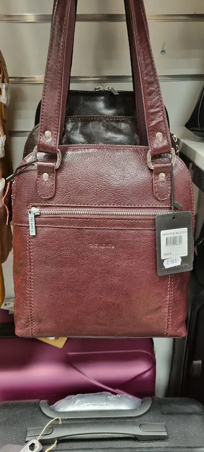 The Monte leður Bakpoki eða axlataska.Vínrauð