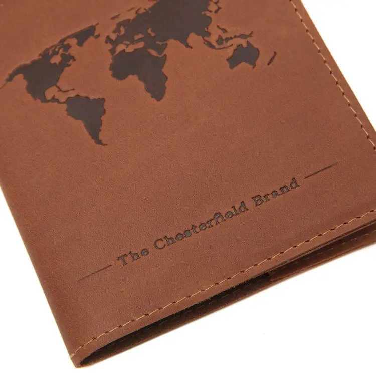 Algjört augnayndi fyrir ferðalanga: leðurvegabréfaveski í tveimur litum! Þessi vegabréfaveski eru úr vax leðri og með fallegu merkjaprenti bæði að framan og aftan.