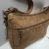 Taskan er tvöfold með rauðri innréttingu ,aftara hólfið er með tveim símavösum seinna hólfið er með rendum vasa .Rendir vasar að framan og aftan ásamt langri axlaról.