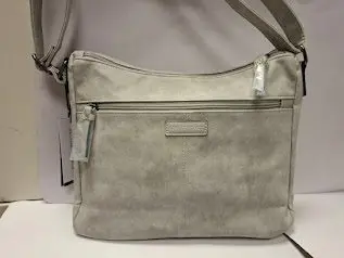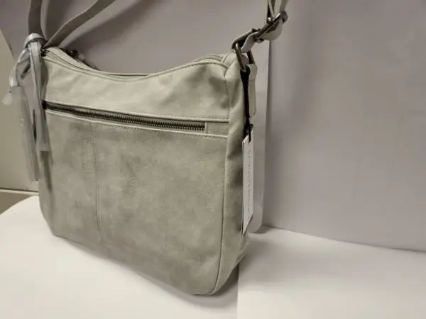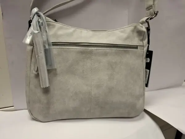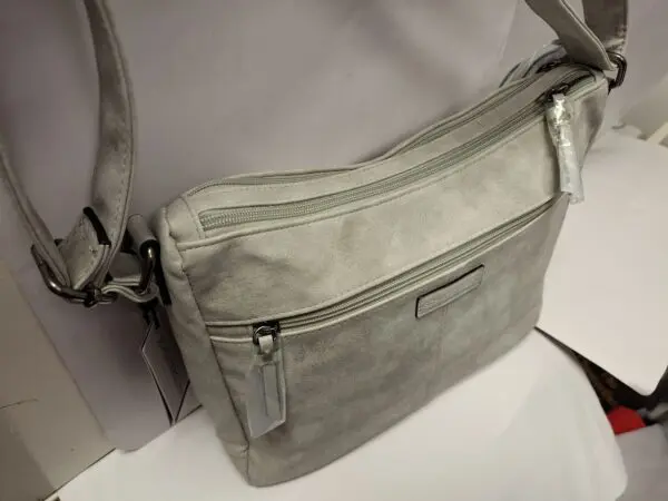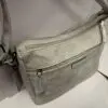 Taskan er tvöfold með rauðri innréttingu ,aftara hólfið er með tveim símavösum seinna hólfið er með rendum vasa .Rendir vasar að framan og aftan ásamt langri axlaról.