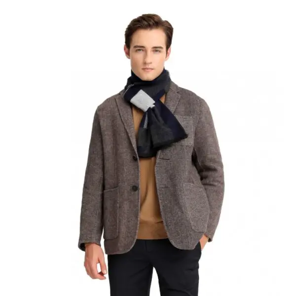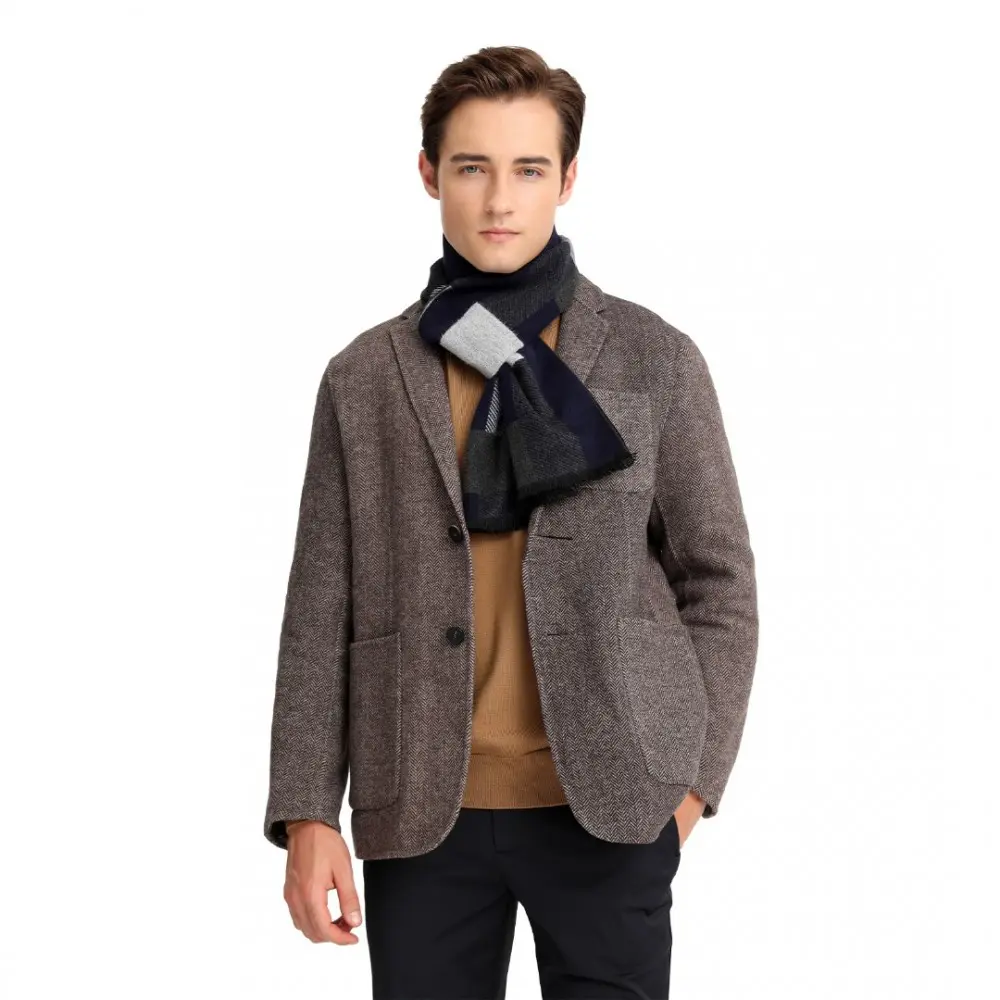 Herra trefilinn okkar er þekktur fyrir að vera léttur á meðan hann er mjög hlýr. Það er áreiðanleg vörn gegn kulda og tryggir að þú sért notalegur allan veturinn. Þennan trefil er auðvelt að sjá um, krumpast ekki og helst á sínum stað með lágmarks fyrirhöfn. Þessi trefil nær fullkomnu jafnvægi milli hagkvæmni og stíls. Hvort sem þú vilt hafa hann frjálslegan eða vefja hann um hálsin, þá er hann í fullkomini lengd fyrir allar þarfir þínar.