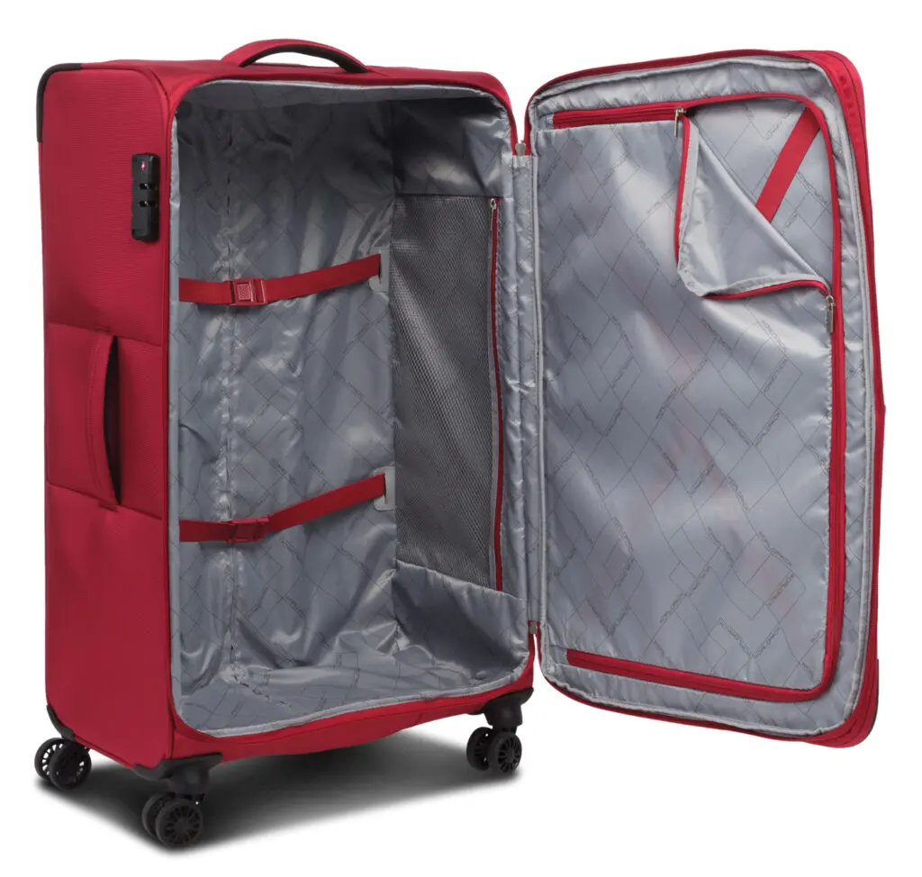 Aðalhólf með rennilás, litlum vasa úr möskva með rennilás og 2 teygjuólum með spennulokun 1 stækkanlegt hólf með rennilás og 2 teygjuólum með spennulokun 2 vasar með rennilás að framan,stækanleg 4 x 360° tvöföld hjól TSA lás 95 Lítra