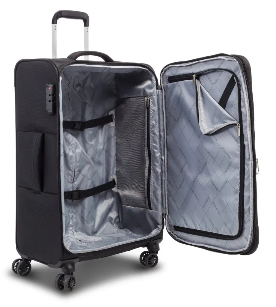 Aðalhólf með rennilás, litlum vasa úr möskva með rennilás og 2 teygjuólum með spennulokun